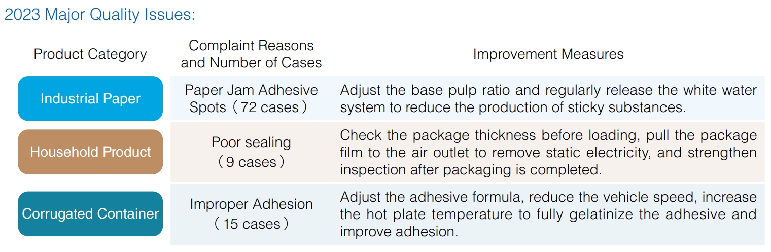 Regarding complaint rates, in comparison to the 2023 targets, the achievement rates of complaint rates for various products were 88% for industrial paper, 86% for household paper, and 24% for paper products, with an average achievement rate of 51%.