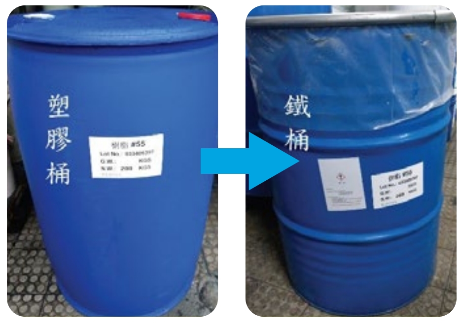 The main resin suppliers have traditionally used plastic barrels for packaging. Since 2021, some have switched to recyclable metal barrels to reduce plastic waste. In 2023, the reduction remained consistent with the previous year, reducing approximately 320 plastic barrels of 200 kg each. Nevertheless, metal barrels need to be lined with plastic bags, which raises concerns about generating additional plastic waste due to the difficulty of cleaning. To address this, suppliers are encouraged to clean and reuse plastic barrels. We will continue to work with suppliers on waste reduction measures.