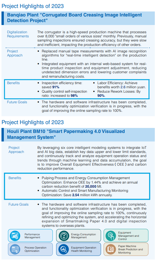 In 2023, over 1,000 proposals were submitted, with 46 excellent cases reaching the finals: 10 administrative, 21 papermaking, and 15 paper products. These proposals are expected to generate nearly NT$230 million in profits, enhancing production efficiency, sales quality, energy saving, carbon reduction, innovation, and work efficiency.